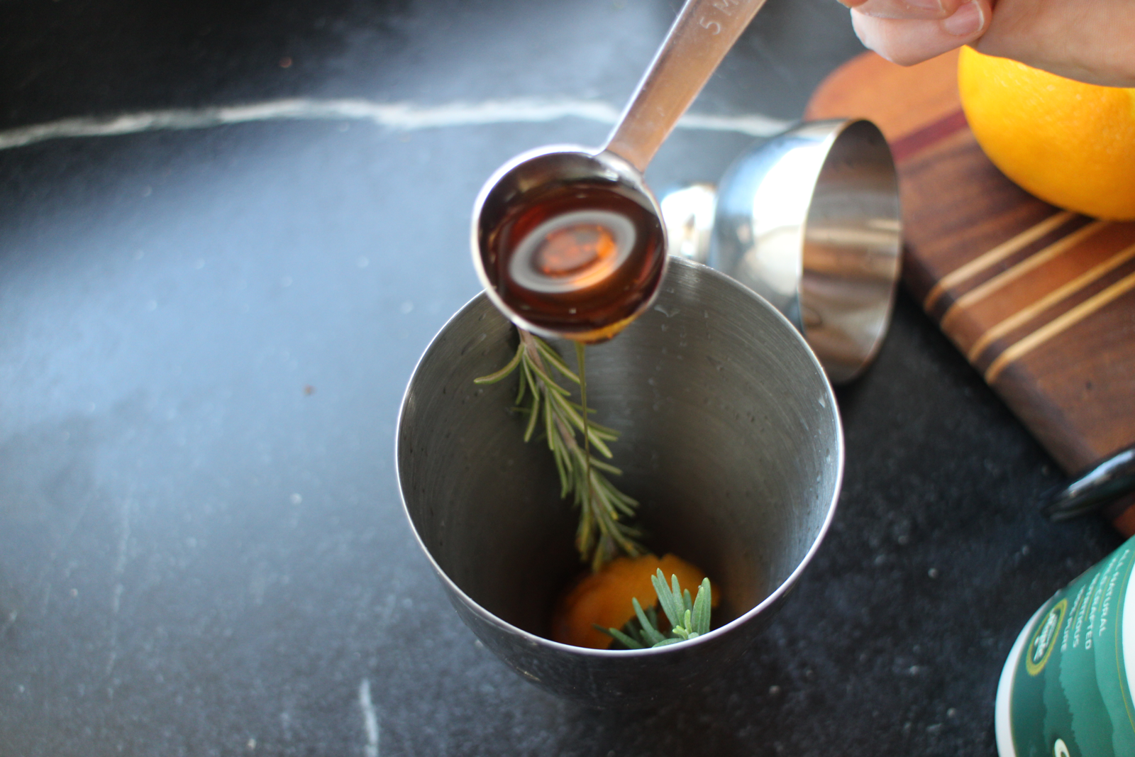 Even more refreshing, however, is our Tap & Tonic, which would be perfect after a long day skiing or snowshoeing. For this version, we wanted to play up the herbal flavors present in the gin by adding fresh rosemary to our drink both in the cocktail shaker and as garnish. To get the most out of the rosemary, we enlisted our muddler yet again, choosing to muddle rosemary with a length of orange peel and Grade A Dark Color, Robust Flavor Vermont maple syrup in our shaker. We then add our gin and ice, shake for 20 seconds, and strain into a highball glass filled with ice. Top the glass up with chilled tonic water, add a sprig of fresh rosemary, and enjoy!